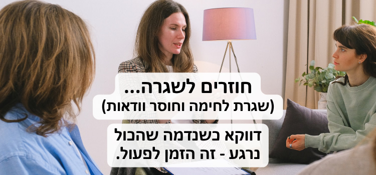 ככל שנחזור לפעולה מהר יותר – נוכל להציע עוגן, שקט פנימי, וריפוי. זה נכון גם עבורכם כמטפלים – וגם עבור הקליניקה שלכם. כל יום של דחייה עלול להיות יום ללא הכנסה. ואם תגיעה שוב התלקחות, אולי לא תהיה לנו הזדמנות לפצות על זה.