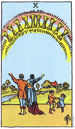 בעלת גג ארגמני. שמו של הקלף בשפת הטארוט הוא אושר. אין טוב ממנו לבטא את הפתגם איזהו עשיר? השמח