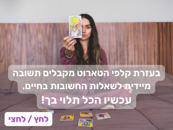 אחרי שביקשתם שנרחיב את התחזית, שיתפנו את המיסטיקניות שלנו והחל מהשבוע תקבלו קריאה קצרה בטארוט. בקריאה, בכל פעם יבחר קלף מיוחד ותקבלו מסר שמגיע מהעולם שמעבר למילים.