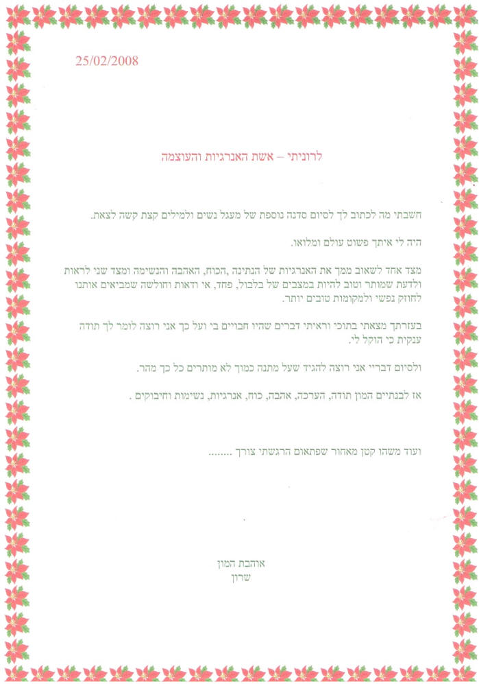 זהו מעגל של עוצמה והעצמה, חשיבה חיובית, חיזוק "עמוד השדרה הפנימי" ושינוי