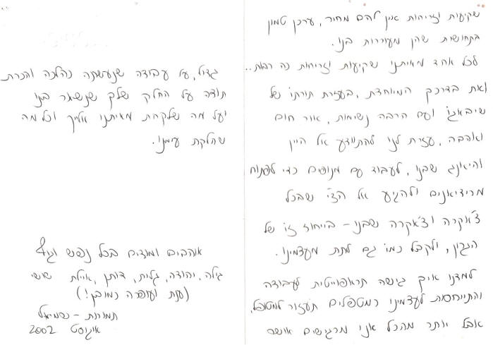היד נטויה, העט רושמת והלב מתכוונן. ניתן לבחור סדנאות והרצאות מן הרשימה